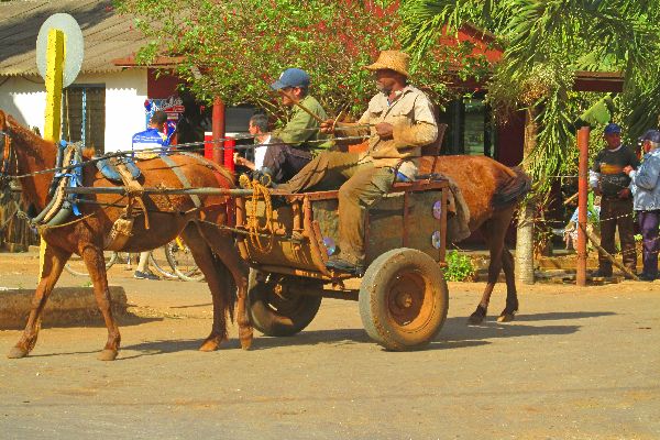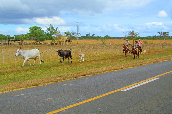 Note from the road:Even small towns, like Babiney Prieto, have organic farms. (left) People wait along the road at junctions (right). This was likely to be coming from or going to work. |