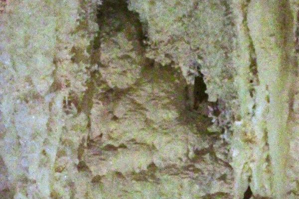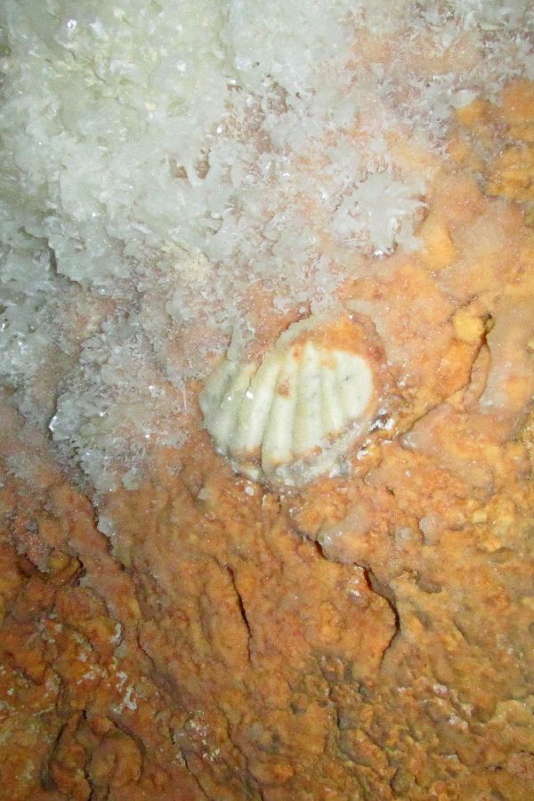 | There is still a lot to see in the public section section of the cave: formations that resemble the Buddha, fossilized shells, and a formation that appears to be a face (inside red circle), that has an uncanny resemblance to one of the geologist/guides at the cave. | ||