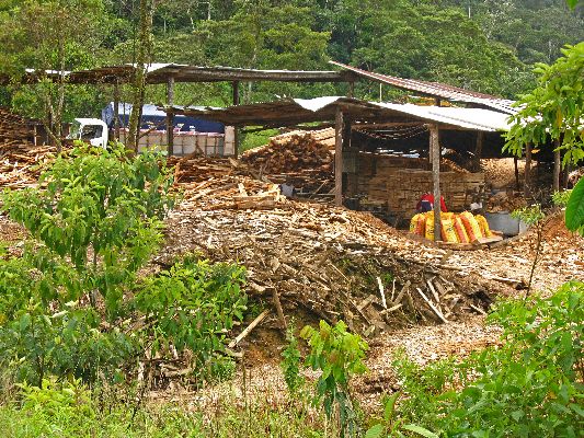 Looking at a contour map you would think that it is flat between along the highway to the south of Puyo. The road follows a ridge that is above 1000 meters between the Rio Pastaza drainage and the Rio Bobonaza drainage. The ridge never gets above 1100 meters. The road drops down to 900 meters to cross a tributary of the Rio Pastaza and then never gets back above 950 meters. But the road is not flat. It undulates through forests and past farms and villages. By and large the area is sparsely populated. At one point the road nears the edge of the ridge and you can look down in to the Amazon basin. There is literally forest for as far as the eye can see. |