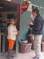 agricultural products and businesses like tourism. Right: Chatting with a local shop keeper. |