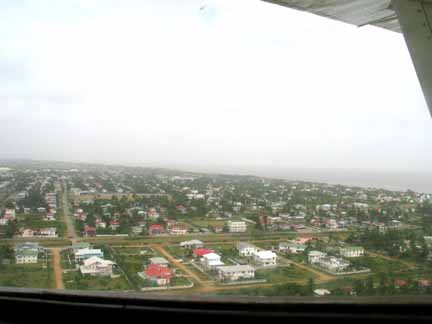 Taking off from Ogle Field (the airport for domestic flights) confirms how small Georgetown is. But, like urban areas around the world, Georgetown is growing. In the new suburbs on this side of the city the lots and buildings are relatively large. | |