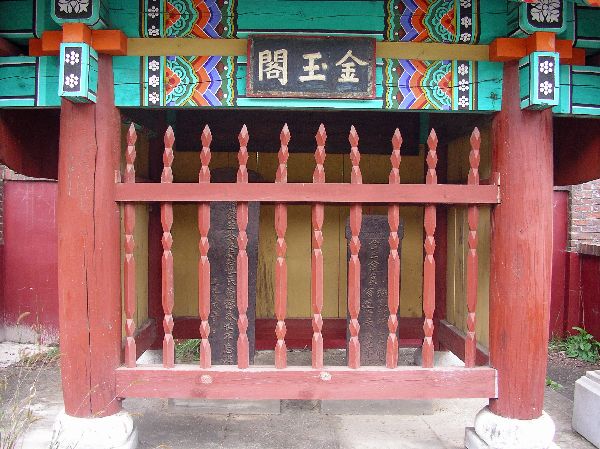 Inside this monument house are iron Seonjeongbi, Geumokcheomwon and Yeongsebulmangbi commemorative monuments. A Seonjeongbi was a monument given by the people to a king/governor/mayor or anyone for doing a good job during his/her period of rule, especially during the Chosun Dynasty. This Seonjeonbi honors Yi Gyuheon who served as Mayor of Samcheok, 1835-1839. In 1837, when the people were suffering from a serious famine, he came to their aid by opening the government storehouse to the people. Iron monuments are rare in this area. The Yeongsebulmangbi, a monument for a person - again, usually a ruler - as a demonstration of the people's prayers for a long life, is also for the Mayor. The Geumokcheomwon commemorates of the residents who constructed the Seonjeongbi.. | |