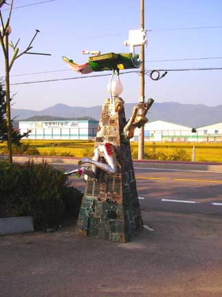 conditions and generally have paved shoulders.Out in the country side it was not unusual to find elaborate landscaping at a junction pointing to a small hamlet or neighborhood. The one to the right is for Geumsa-ri. |