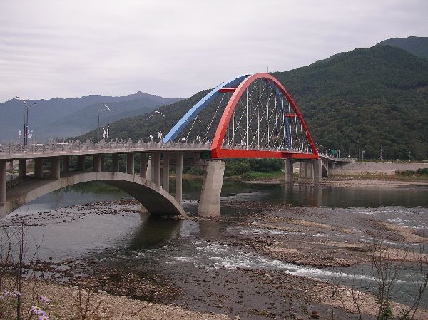 A new bridge across the Seomjingang (river).