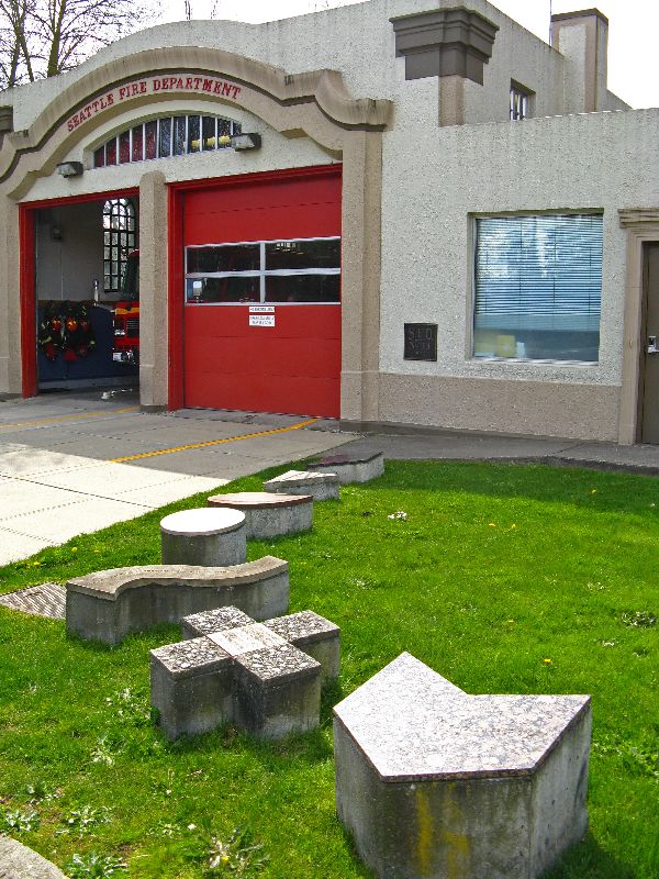 In keeping with Ballard's Scandinavian heritage, the great explorer, Leif Erikson surveys the scene from a pedestal on the edge of the parking lot. No one expects that he made it to the Pacific Northwest, but many argue that he captained boats that reached North America before Christopher Columbus. |
