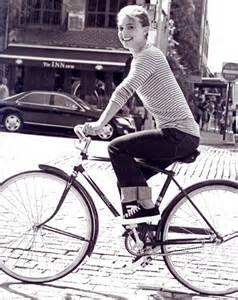 Roberts (actress) seems to take a very practical approach to bicycling. (left)