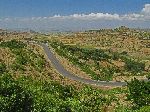 Lake Tana is visible to the west at several points of this sections but the road engineers determined that the most expeditious way to get from Adis Zemem to Gondar was not via the lake shore but on a direct route over several ridges. By the time you reach Gondar you are at the hills the foothills of the Simien mountains. | ||