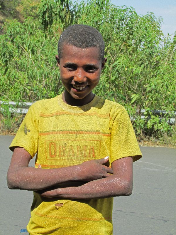 boys t-shirts says "Obama". He was very willing to be photographed in it.