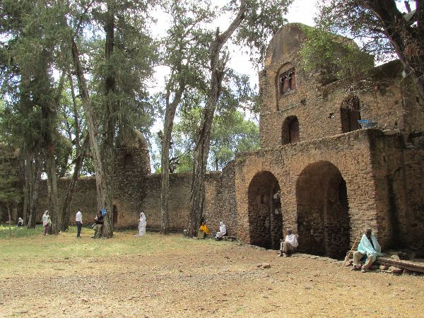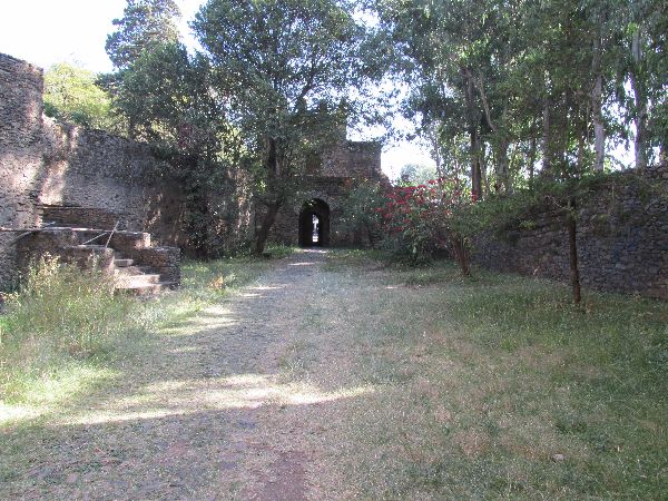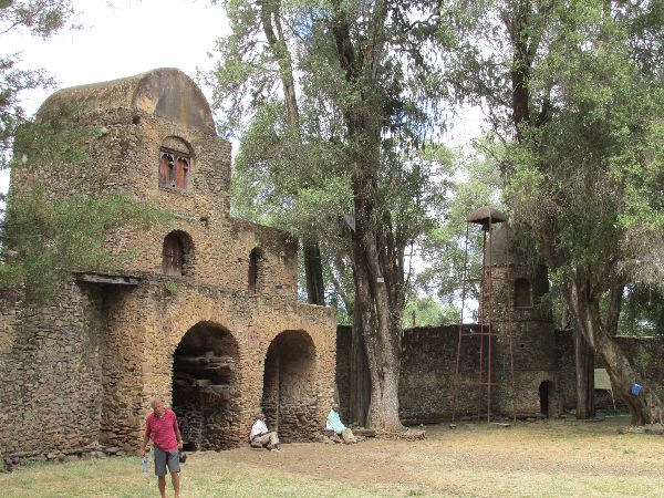 The stone wall surrounding Fasil Ghebbi is 900m (over a half mile) long and has a dozen gates. The interior has an open forest, lawns, gardens, a half dozen impressive buildings built by emperors of the Solomonic dynasty of Gondar in the 17th and 18th century and a similar number of buildings in ruins. |