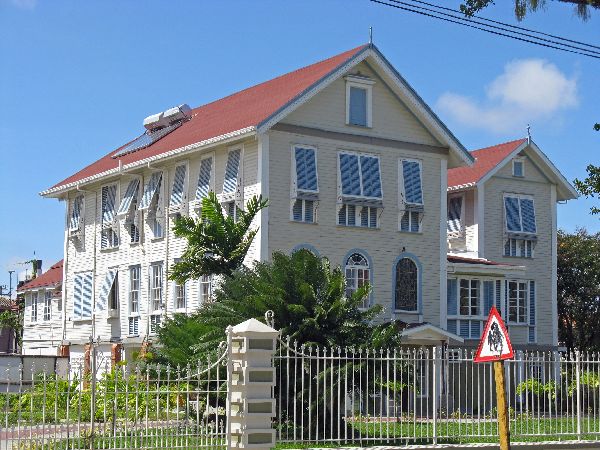 In the same style as the previous building, this typical Georgetown heritage building houses the National Trust of Guyana and several other enterprises. The National Trust of Guyana is a government enterprise, established in 1972, whose mandate is to the preservation and conservation of historic buildings and sites in Guyana. Many vernacular features, predominantly the ‘Demerara Windows’ and the ‘Georgian six paned windows' characterize the building. | |