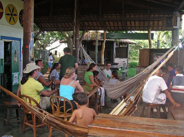 As we spoke to "Uncle Theo," these girls grandfather, and a founder of the village, the girls played for an hour in the hammock. As they tumbled and squirmed with each other in and out of the hammock the play was in almost constant transition. One scenario seems to merge into another: The hammock became their boat as they fished, the shorelines as they were river otters, their house for serving each other a pretend meal, their fort / hideaway from the strange visitors and then onto other sets I couldn't determine. | |